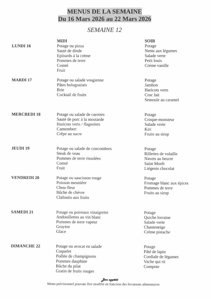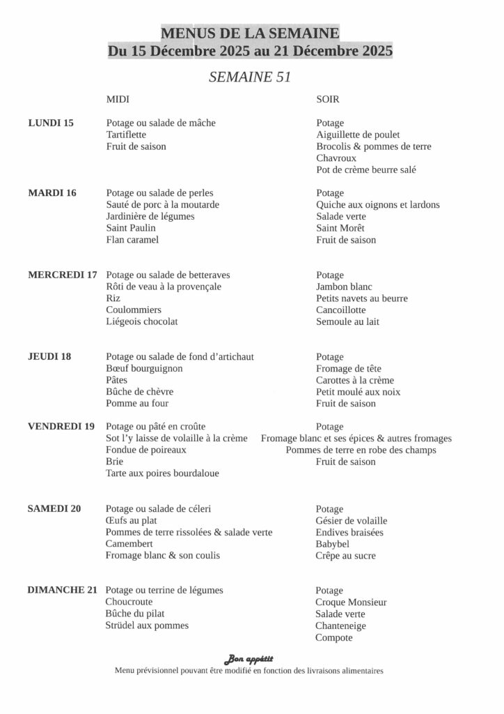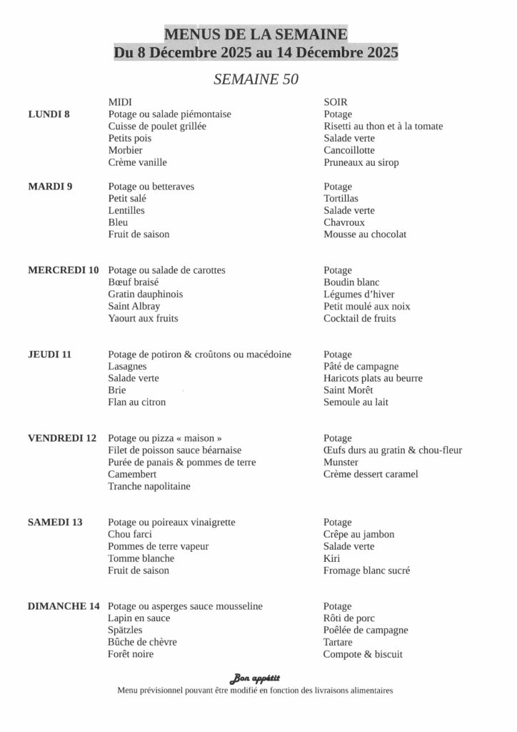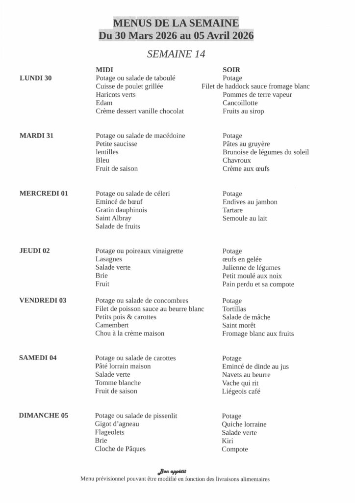 Menus de la semaine
