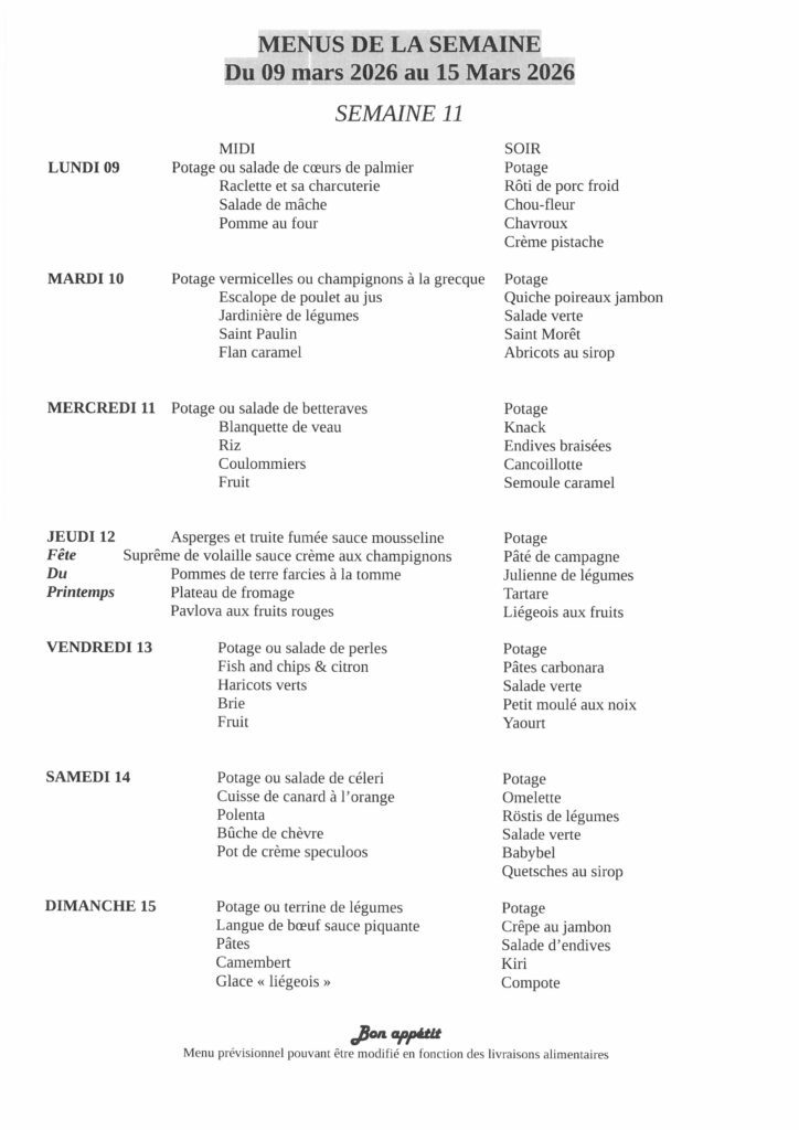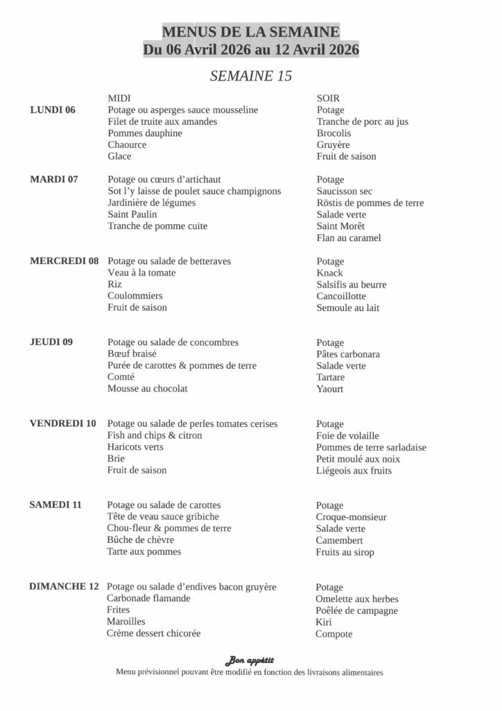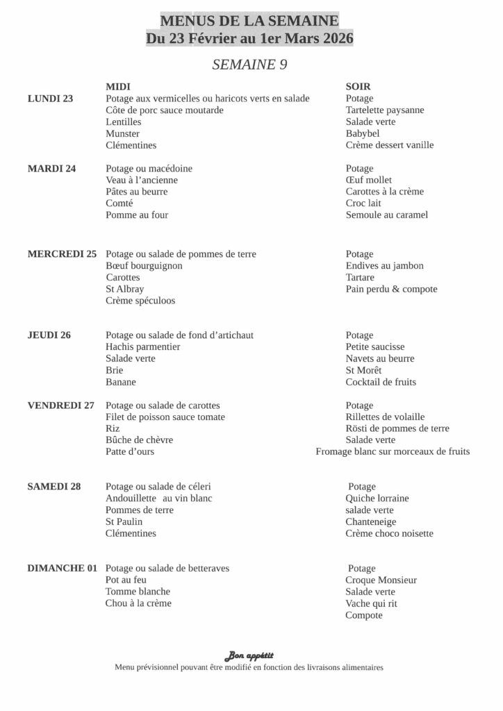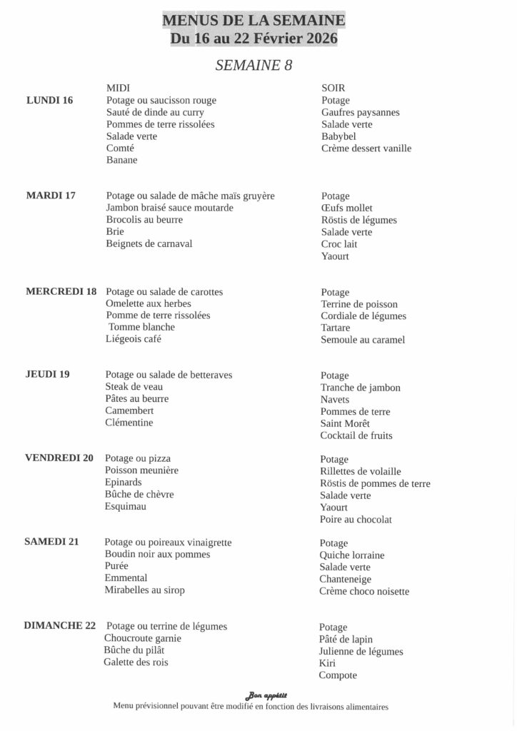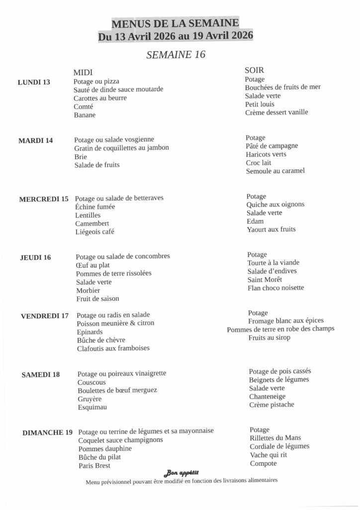Menus de la semaine